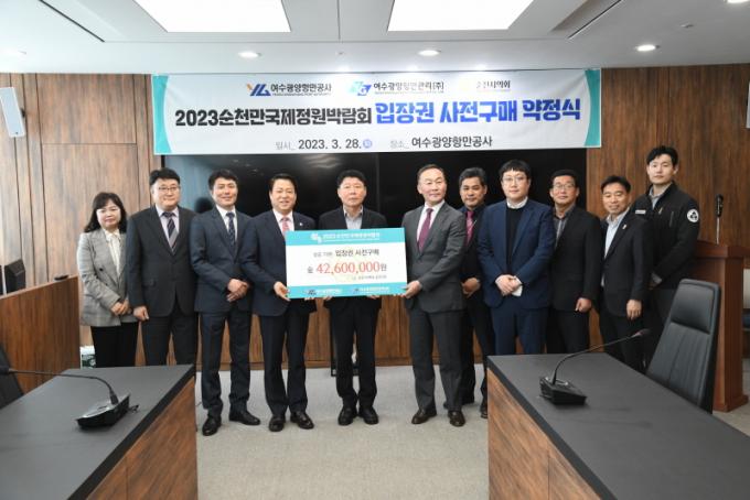À̳¯ ¾àÁ¤½Ä¿¡´Â ¼øÃµ½ÃÀÇȸ Á¤º´È¸ ÀÇÀå, ¿©¼ö±¤¾çÇ׸¸°ø»ç ¹Ú¼ºÇö »çÀå, ¿©¼ö±¤¾çÇ׸¸°ü¸®(ÁÖ) ¿À¼±°æ »çÀåÀÌ Âü¼®ÇßÀ¸¸ç, Áö³ 1¿ù¿¡ À̾î ÃÑ 4,300¸¸¿ø »ó´çÀÇ ÀÔÀå±Ç ±¸¸Å¾àÁ¤À» ÅëÇØ ¹Ú¶÷ȸ ¼º°ø°³ÃÖ¸¦ ±â¿øÇß´Ù.