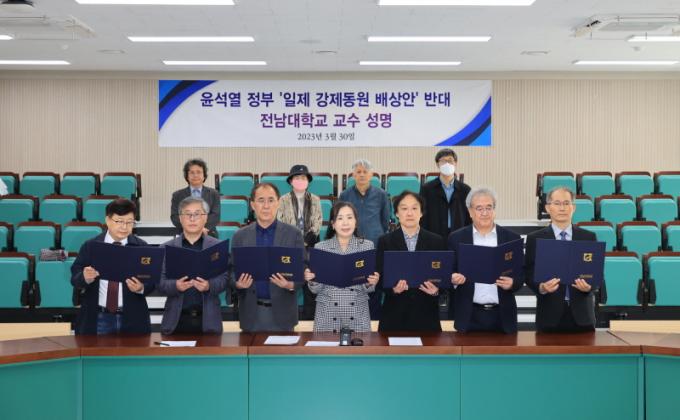 ÇÑÀº¹Ì ±³¼öȸÀå µî Àü³²´ë ±³¼ö 227¸íÀº 3¿ù 30ÀÏ ³· 12½Ã ´ëÇк»ºÎ 1Ãþ ¼¼¹Ì³ª½Ç¿¡¼ ±âÀÚȸ°ßÀ» ¿°í ÀÏÁ¦ °Á¦µ¿¿ø ¹è»ó¾ÈÀ» ±ÔźÇÏ´Â ¼º¸íÀ» ¹ßÇ¥Çß´Ù.
