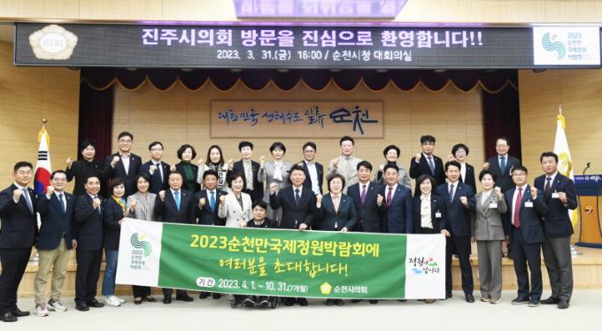 [È£³²µµ¹Î½Å¹® = ÀÓÀ±Áø ±âÀÚ] ¼øÃµ½ÃÀÇȸ(ÀÇÀå Á¤º´È¸)¿Í ÀڸŰῬÀ» ¸ÎÀº ÁøÁÖ½ÃÀÇȸ(ÀÇÀå ¾çÇØ¿µ)°¡ 31ÀÏ 2023¼øÃµ¸¸±¹Á¦Á¤¿ø¹Ú¶÷ȸ °³¸·½Ä Âü¿©¸¦ À§ÇØ ¼øÃµÀ» ¹æ¹®Çß´Ù.