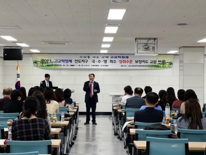 4ÀÏ(È)¿¡´Â ¼öÇÐ ±³¿ø, 5ÀÏ(¼ö)¿¡´Â ¿µ¾î ±³¿ø °¢ 30¿© ¸íÀ» ´ë»óÀ¸·Î ¿¬¼ö¸¦ ÁøÇàÇÑ´Ù. À̹ø ¿¬¼ö´Â °í±³ÇÐÁ¡Á¦ ¼±µµÁö±¸ »ç¾÷ÀÇ ÀÏȯÀ¸·Î, 2025³â °í±³ÇÐÁ¡Á¦ Àü¸é ½ÃÇà¿¡ ´ëºñÇÏ¿© °í±³ Ã¥ÀÓ±³À°À» À§ÇÑ ±³¿ø ¿ª·® °È¸¦ À§ÇØ ¸¶·ÃµÆ´Ù.
