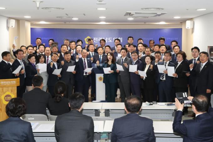 Àü³²µµÀÇȸ´Â 4ÀÏ, ºê¸®Çνǿ¡¼ Â÷¿µ¼ö ÀÇȸ¿î¿µÀ§¿øÀå(´õ¹ÎÁÖ, °Áø)À» ºñ·ÔÇÑ 50¿© ¸íÀÇ ÀÇ¿øµéÀÌ ±ä±Þ ¸ðÀÓÀ» °®°í ¼º¸í¼¸¦ ÅëÇØ ¡°200¸¸ Àü³²µµ¹ÎÀÇ ÀǰßÀ» ¹«½ÃÇÑ Ã¤ ÇÔÆò±ºÀÇ ±¤Áֽà ÆíÀÔÀ» ²Þ²Ù´Â ±¤ÁÖ½ÃÀåÀº Áï°¢ »ç°úÇ϶󡱰í Ã˱¸Çß´Ù.