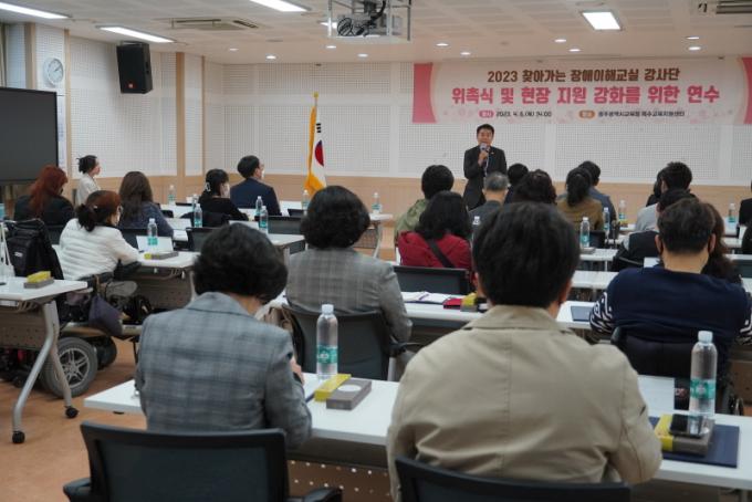 ÇÑÆí, ±¤Áֽñ³À°Ã» ÁßµîÆ¯¼ö±³À°°ú ±è¼±¼º °úÀåÀº ¡°À̹ø ±³À°À» ÅëÇØ ¸ðµç ÇлýµéÀÌ Àå¾Ö¿¡ ´ëÇÑ Àαǰ¨¼ö¼ºÀ» Ű¿ì´Â ½Ã°£ÀÌ µÇ±â¸¦ ¹Ù¶õ´Ù¡±¸ç ¡°¾ÕÀ¸·Îµµ ÀϹÝÇб³¿¡¼ÀÇ ±àÁ¤ÀûÀÎ Àå¾Ö°ø°¨¹®ÈÁ¶¼º¿¡ Áö¼ÓÀûÀ¸·Î Èû¾²°Ú´Ù¡±°í ¹àÇû´Ù.