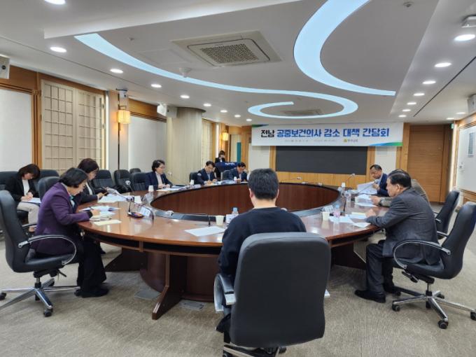 À̳¯ °£´ãȸ¿¡´Â ÃÖ¿îâ Àü³²µµÀÇ»çȸÀå, Á¤±âÈ£ °ÁøÀÇ·á¿øÀå, ±èµ¿±¹ ÇØ³²Á¾ÇÕº´¿øÀå, Á¶Áø¼® Àü³²µµ °øº¸ÀÇ ´ëÇ¥, ½Ã±º º¸°Ç¼ÒÀå ´ëÇ¥ µî 9¸íÀÇ °øÁߺ¸°ÇÀÇ»ç ¹èÄ¡ °ü°èÀÚ°¡ Âü¼®ÇØ µµ³» ÀÇ·á ÇöȲÀ» ÆÄ¾ÇÇϰí ÇâÈÄ °øÁߺ¸°ÇÀÇ»ç ºÎÁ· ¹®Á¦ ÇØ°á ¹æ¾ÈÀ» ÁýÁß ³íÀÇÇß´Ù.