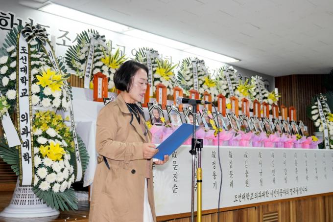 À̹ø Çà»ç´Â 2022³â 1¿ùºÎÅÍ 2023³â 1¿ù±îÁö Á¶¼±´ë Àǰú´ëÇп¡ ½Ã½ÅÀ» ±âÁõÇÑ 15¸í°ú ±× À¯°¡Á·¿¡°Ô °¨»çÀÇ ¸¶À½À» ÀüÇϰíÀÚ ¸¶·ÃµÆ´Ù. À̹ø ÇÕµ¿Ã߸ð½Ä¿¡´Â ½Ã½Å ±âÁõÀÚÀÇ À¯Á· ¹× Á¶¼±´ë ÀÇÇаú ±³¼ö¿Í Çлý, Ä¡°ú´ëÇÐ Çлý, Á÷¿ø µîÀÌ Âü¼®Çß´Ù.