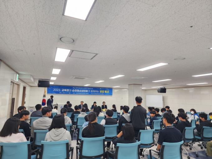 ÀÓÁ¾À± ±³À°ÀåÀº ¡°¿À´Ã À̾߱⠳ª´« ÇлýµéÀÇ ´Ù¾çÇÑ ÀǰߵéÀ» Çб³¿Í °øÀ¯ÇÏ¿© ¹Ý¿µµÉ ¼ö ÀÖµµ·Ï ÇϰڴÙ. ¼øÃµÀÇ ¹Ì·¡ÀÎ ÇлýµéÀÌ ¾ÕÀ¸·Îµµ Áö¿ª»çȸ¿Í Çб³¸¦ À§ÇØ °í¹ÎÇÏ°í ´Ù¾çÇÑ ÀǰßÀ» Á¦½ÃÇÏ¿© ÁÖ±æ ¹Ù¶ó¸ç, ÇлýÀÚÄ¡ Ȱµ¿ÀÌ È°¼ºÈµÉ ¼ö ÀÖµµ·Ï Áö¿øÇϰڴÙ.¡±¶ó°í ÀüÇß´Ù.