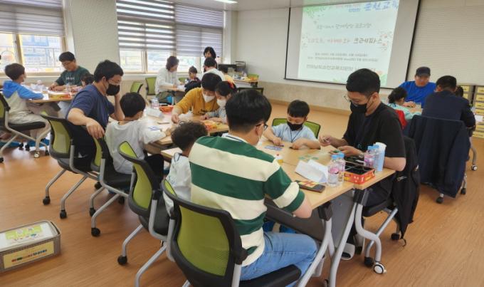 ¡®¾Æºü³îÀ̲ٷ¯¹Ì¡¯´Â ÃÊÄݸ´ ¸¸µé±â, º¸µå°ÔÀÓ, °¡Á·Áú¹®Ä«µå µîÀ¸·Î ´Ù¾çÇÏ°Ô ±¸¼ºµÇ¾î ÀÖ°í, ²Ù·¯¹Ì¸¦ ÅëÇØ ÀÏ»ó»ýȰ ¼Ó¿¡¼µµ ¾Æºü¿Í ¾ÆÀ̰¡ Á¤¼Àû À¯´ë°¨À» Çü¼ºÇϰí ÇູÇÑ °æÇèÀ» ÇÒ ¼ö ÀÖÀ» °ÍÀ¸·Î ±â´ëµÈ´Ù. ÇÁ·Î±×·¥¿¡ Âü¿©ÇÑ ÃʵîÇб³ 2Çгâ Çкθð´Â ¡°¾Æºü³îÀ̲ٷ¯¹Ìµµ Å« ¼±¹°Àε¥ ³ª´©¾î ÁÖ´Â °ÍÀ¸·Î ³¡³ªÁö ¾Ê°í ÁÖº¯¿¡¼ Ȱ¿ëÇÒ ¼ö ÀÖ´Â °Íµé·Î ³îÀ̹æ¹ýµµ ¾Ë·ÁÁÖ°í °°ÀÌ ³î¾ÆÁÖ´Ï ¾ÆÀÌÀÇ ¿ôÀ½¼Ò¸®°¡ Àú¿¡°Õ Å« ¼±¹°ÀÌ µÈ °Í °°´Ù¡±°í ¼Ò°¨À» ¹àÇû´Ù. ÇÑÆí, ÀÓÁ¾À± ±³À°ÀåÀº¡°¾ÆÀÌ¿Í ¾Æºü°¡ ÇÔ²²ÇÏ´Â ³îÀÌ °æÇèÀº °¡Á·ÀÇ Ä£¹Ð°¨°ú ¼ÒÁßÇÔÀ» ´À³¢°í, ÇлýµéÀÇ Á¤¼Àû ¾ÈÁ¤°ú Çб³ÀûÀÀ·ÂÀ» ±â¸£´Âµ¥ Å« µµ¿òÀÌ µÉ °ÍÀÌ´Ù. ¾ÕÀ¸·Îµµ ¸¹Àº °¡Á·ÀÌ Âü¿©Çؼ Áñ°Ì°í ÇູÇÑ ½Ã°£ÀÌ µÉ ¼ö ÀÖµµ·Ï ÀÌ·¯ÇÑ ±âȸ¸¦ ¸¹ÀÌ ¸¸µé°Ú´Ù ¡±°í ¸»Çß´Ù.