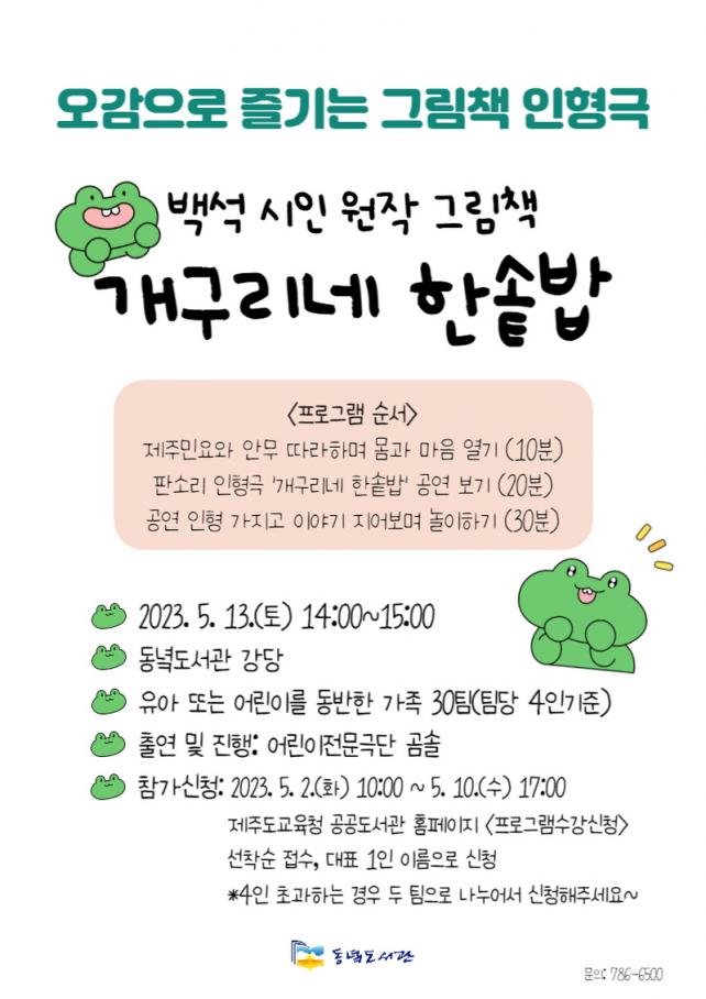 À̹ø °ø¿¬Àº 5¿ù 13ÀÏ(Åä) ¿ÀÈÄ2½Ã µ¿³èµµ¼°ü °´ç¿¡¼¡®¾î¸°ÀÌÀÎÇü±ØÀü¹® ±Ø´Ü °õ¼Ö¡¯ÀÌ ¹é¼® ½ÃÀÎ ¿øÀÛÀÇ ±×¸²Ã¥ <°³±¸¸®³× ÇѼܹä>¿¡ ÆÇ¼Ò¸®¿Í Àç¹ÌÀÖ´Â ¾È¹«¸¦ °¡¹ÌÇÑ ÀÎÇü±Ø °ø¿¬À» ÆîÄ¡¸ç, °ø¿¬ ÈÄ¿¡´Â ¾î¸°À̵éÀÌ ÀÎÇüÀ» Á÷Á¢ ¸¸Áö°í À̾߱⸦ ÁöÀ¸¸ç ³îÀÌȰµ¿À» ÇÏ´Â ½Ã°£À» °®´Â´Ù.
