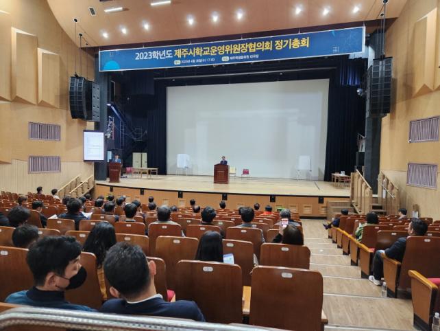 ÇÑÆí, À̳¯ °³ÃÖµÈ Á¤±âÃÑȸ¿¡¼ 2023Çг⵵ Á¦ÁÖ½ÃÇб³¿î¿µÀ§¿øÀåÇùÀÇȸÀå¿¡ ±è³²µµ ½Å¼º¿©ÀÚ°íµîÇб³¿î¿µÀ§¿øÀå, °¨»ç¿¡´Â ºÎâȣ ´ë±â°íµîÇб³¿î¿µÀ§¿øÀå°ú Á¶¿µ±â Çѱ¹ºäƼ°íµîÇб³¿î¿µÀ§¿øÀåÀÌ ¼±ÃâµÇ¾ú´Ù.