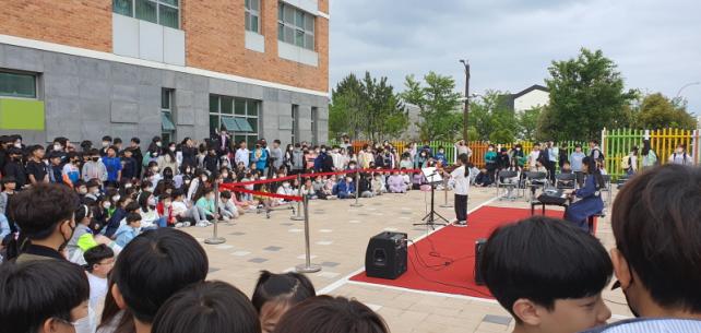 À̹ø ¾ÆÄ§ ÀÛÀº À½¾Çȸ¿¡¼´Â ¾Ç±â¿¬ÁÖ¸¦ Á᫐ Å׸¶·Î ¾ß¿Ü ±³Á¤¿¡¼ ¸¹Àº ÇлýµéÀÌ Âü¿©ÇÑ °¡¿îµ¥ ¿î¿µµÇ¾úÀ¸¸ç ÇǾƳë, Ä®¸²¹Ù, ¹ÙÀ̿ø° µî ¾Æ¸§´Ù¿î ¾Ç±â ¼±À²ÀÌ ¿ï·ÁÆÛÁú ¶§¸¶´Ù Å« ¹Ú¼ö°¡ ²÷ÀÌÁö ¾Ê¾Ò´Ù.