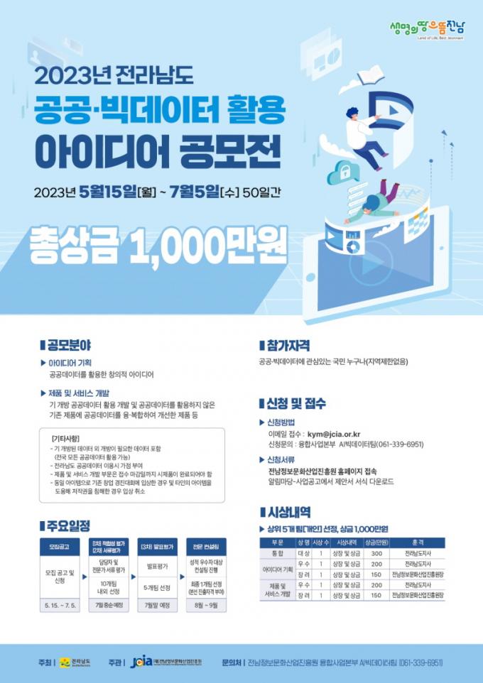 Á¤±Ý¼÷ Àü³²µµ ½º¸¶Æ®Á¤º¸´ã´ç°üÀº ¡°À̹ø °ø¸ðÀüÀ» ÅëÇØ °ø°ø¡¤ºòµ¥ÀÌÅÍ È°¿ëÀÌ ÁõÁøµÇ°í ¹Î°£ÀÇ Ã¢ÀÇÀû ¾ÆÀ̵ð¾î ¹ß±¼·Î â¾÷ÀÌ È°¼ºÈµÇ±æ ±â´ëÇÑ´Ù¡±¸ç ¡°µµ¹Î°ú µµ³» ±â¾÷ÀÇ ¸¹Àº °ü½É°ú Âü¿© ¹Ù¶õ´Ù¡±°í ´çºÎÇß´Ù.