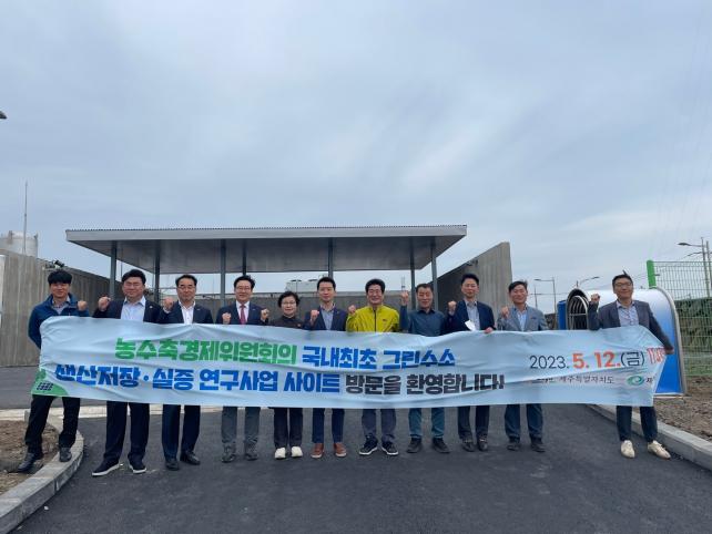 ³ó¼öÃà°æÁ¦À§¿øÈ¸ À§¿øµéÀº 3MW ±×¸°¼ö¼Ò »ý»ê±âÁö¿Í ±×¸°¼ö¼Ò ÃæÀü¼Ò¿¡ ´ëÇÑ »ç¾÷°³¿ä, ½Ã¼³±¸Ãà µî ÃßÁøÇöȲ¿¡ ´ëÇÑ ³»¿ëÀ» µµ Çõ½Å»ê¾÷±¹ÀåÀ¸·ÎºÎÅÍ ¼³¸í ¹Þ°í ÇöÀåÀ» Á¡°ËÇß´Ù.