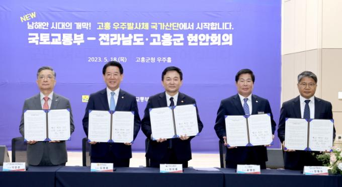 Çö¾È ȸÀÇ¿¡¼± °íÈï ¿ìÁֹ߻çü ±¹°¡»ê´Ü ¼º°øÀ» À§ÇÑ ±¹ÅäºÎ¡¤Àü³²µµ¡¤°íÈﱺ¡¤Çѱ¹ÅäÁöÁÖÅðø»ç¡¤Àü³²°³¹ß°ø»ç °£ ¾÷¹«Çù¾àÀ» Çß´Ù. ÀÌ¾î ±¹ÅäºÎÀÇ ±¹°¡»ê´Ü Á¶¼º Áö¿ø°èȹ°ú Çѱ¹ÅäÁöÁÖÅðø»ç ±âº»±¸»ó ¹ßÇ¥°¡ ÁøÇàµÆ´Ù.