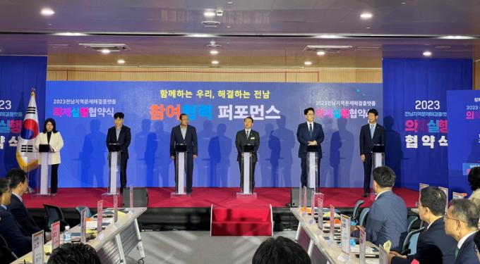 ¹ÚÇö½Ä Àü³²µµ ÀÚÄ¡ÇàÁ¤±¹ÀåÀº ¡°Áö¿ª¼Ò¸ê, ±âÈÄÀ§±â µî ´ç¸é À§±â¸¦ ½½±â·Ó°Ô ÇØ°áÇϱâ À§ÇØ ¹Î¡¤°ü¡¤°øÀÌ ÁöÇý¿Í ÈûÀ» ¸ð¾Æ¾ß ÇÑ´Ù¡±¸ç ¡°Àü³²Áö¿ª¹®Á¦ÇذáÇ÷§ÆûÀÌ ½Ã´ëÀû ¿ä±¸¿¡ ºÎÀÀÇØ Áö¿ªÀÇ Çõ½Å°ú »õ·Î¿î ¼ºÀå Àüȯ ±¹¸éÀ» ´ÙÁöµµ·Ï Àû±Ø Áö¿øÇϰڴ١±°í ¸»Çß´Ù.