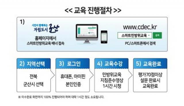 ±³À°¹æ¹ýÀº ±º»ê½Ãû ȨÆäÀÌÁö³ª ÀÎÅÍ³Ý Æ÷Åп¡¼ ½º¸¶Æ®¹Î¹æÀ§±³À° »çÀÌÆ®(www.cdec.kr)¿¡ Á¢¼ÓÇÑ µÚ º»ÀÎÀÎÁõÀ» °ÅÃÄ ±³À°À» À̼öÇÏ¸é µÇ°í ±³À° ´ë»óÀÚ¿¡ ´ëÇØ¼´Â ¸ð¹ÙÀÏÀ» ÅëÇØ »çÀ̹ö ±³À° ÀÏÁ¤ īī¿À ¾Ë¸²Åå ¼ºñ½ºµµ ½ÃÇàÇÑ´Ù.
