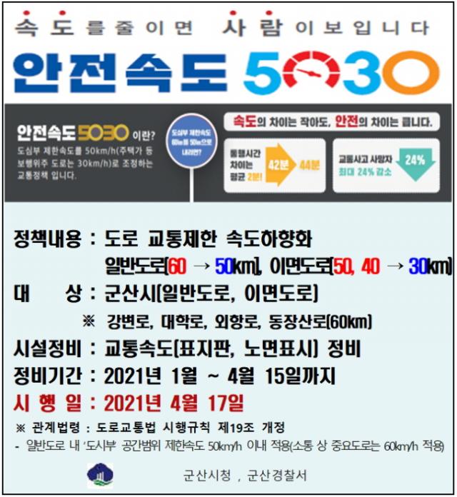 ÇÑÆí, ±º»ê½Ã °ü°èÀڴ¡°¿îÀüÀÚ¿Í º¸ÇàÀÚ ¸ðµÎÀÇ ¾ÈÀüÀ» À§ÇØ ½ÃÇàÇÏ´Â °ÍÀ¸·Î, ¾ÈÀü¼Óµµ 5030ÀÌ Á¶±â¿¡ Á¤ÂøµÇ°í À̸¦ ÁؼöÇÒ ¼ö ÀÖµµ·Ï ¿îÀüÇÏ´Â ºÐµéÀÇ Àνĺ¯È¿Í Àû±ØÀûÀÎ ÇùÁ¶°¡ ÇÊ¿äÇÏ´Ù¡±°í ÀüÇß´Ù.