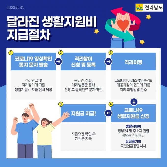 º¯°æ »çÇ×Àº 6¿ù 1ÀÏ ÀÌÈÄ ¾ç¼º È®ÀÎ ÅëÁö ¹®ÀÚ¸¦ ¹ÞÀº »ç¶÷ºÎÅÍ Àû¿ëµÈ´Ù. Áö¿ø ±âÁذú Áö¿ø ±Ý¾×Àº ÇöÇà´ë·Î À¯ÁöµÈ´Ù. Äڷγª19 ÀÔ¿ø¡¤°Ý¸®ÀÚ ¼Òµæ Áö¿ø ±âÁØÀº ÁßÀ§¼Òµæ 100% ÀÌÇÏÀ̸ç Áö¿ø ±Ý¾×Àº 1ÀÎ °¡±¸ 10¸¸ ¿ø, 2ÀÎ ÀÌ»ó °¡±¸ 15¸¸ ¿øÀÌ´Ù.