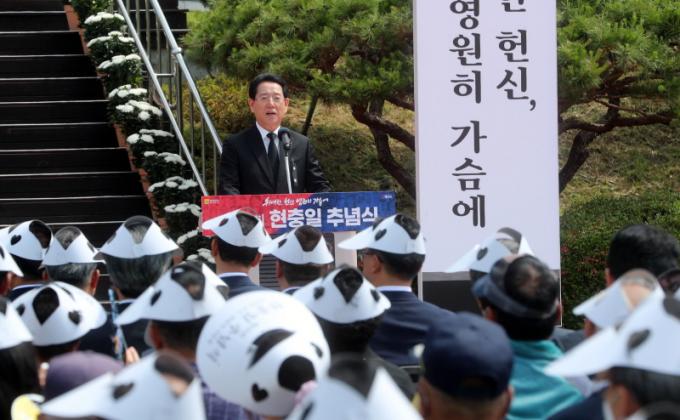 ¡®´ëÇѹα¹À» ÁöÄѳ½ ´ç½ÅÀÇ Èñ»ýÀ» ±â¾ïÇÕ´Ï´Ù¡¯¸¦ ÁÖÁ¦·Î ¿¸° À̳¯ ±â³ä½Ä¿£ ±è¿µ·Ï Àü³²µµÁö»ç, ¸íÇö°ü ÇØ³²±º¼ö, º¸ÈÆ´ÜüÀå µî 500¿© ¸íÀÌ Âü¼®Çß´Ù.