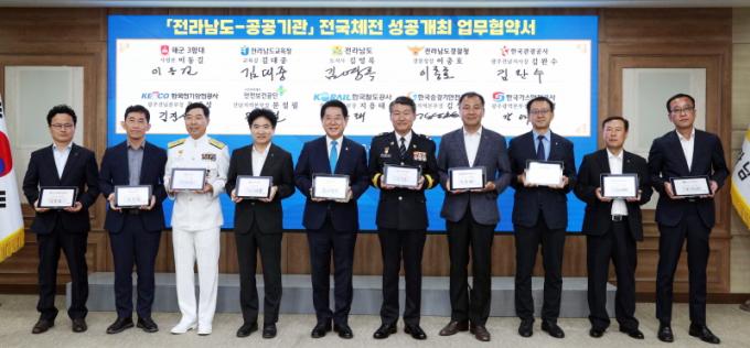 16ÀÏ µµÃ» ¼ÀçÇʽǿ¡¼ ¿¸° Çù¾à½Ä¿¡´Â ±è¿µ·Ï Àü¶ó³²µµÁö»ç¿Í ±è´ëÁß Àü¶ó³²µµ±³À°°¨, ÀÌÃæÈ£ Àü¶ó³²µµ°æÂûûÀå, À̵¿±æ ÇØ±º3ÇÔ´ë »ç·É°ü µî 9°³ °ø°ø±â°üÀå(ÁöºÎÀå)ÀÌ Âü¼®Çß´Ù.