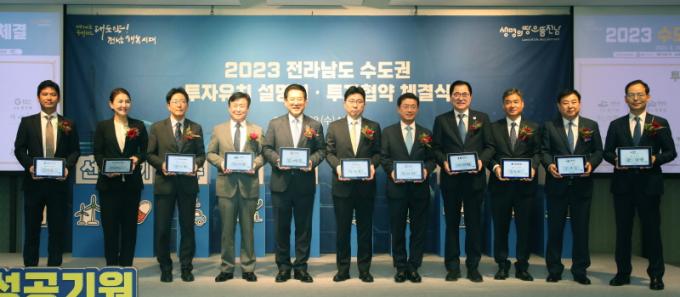 À̳¯ ¼³¸íȸ¿¡´Â ±è¿µ·Ï Àü³²µµÁö»ç, Á¤±â¸í ¿©¼ö½ÃÀå, Á¤ÀÎÈ ±¤¾ç½ÃÀå, °Á¾¸¸ ¿µ±¤±º¼ö, ½Å¿ìö ¿Ïµµ±º¼ö, ±èº´À± º£½ºÅ¸½º ºÎ»çÀå, ÇÏ¿î½Ä GE¸®´º¾îºí¿¡³ÊÁö »çÀå, ÀÓÈ¿¼º ¢ßÈ¿¼º »ó¹«, ³ëÇü¼· ÀÏÁøÀü±â Àü¹«, ¹Ú»óÈÆ HDÇö´ëÀÏ·ºÆ®¸¯ Àü¹«, À̼º¹é Àç°æ±¤ÁÖÀü³²Çâ¿ìȸ ¼ö¼® ºÎȸÀå, ¼öµµ±Ç ¼ÒÀç ±â¾÷°ú Çùȸ ´ëÇ¥ 150¿© ¸íÀÌ Âü¼®Çß´Ù. Çà»ç´Â ÅõÀÚÇù¾à, Àü³²ÀÇ ÅõÀÚȯ°æ ¹× ÅõÀÚÁö¿øÁ¦µµ ¼Ò°³ ¹ßÇ¥, ¸ÂÃãÇü »ó´ã µîÀ¸·Î ÁøÇàµÆ´Ù.