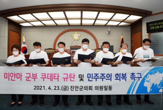 ÇÑÆí, Áø¾È±ºÀÇȸ´Â ¹Ì¾á¸¶ ±ººÎ Äíµ¥Å¸ ±Ôź ¹× ¹ÎÁÖÁÖÀÇ È¸º¹À» Ã˱¸ÇÏ´Â Àǹ̷Π¼Ò¼ÓÀÇ¿ø Àü¿øÀÌ ¡®¹Ì¾á¸¶ÀÇ ¹ÎÁÖÈ ¿îµ¿ÀÌ ½Â¸®ÇÏ´Â ³¯±îÁö¡¯ ¹®±¸°¡ »õ°ÜÁø Ƽ¼ÅÃ÷¸¦ ÀÔ°í ¼º¸í¼¸¦ ³¶µ¶Çß´Ù.