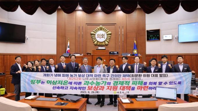³ªÁÖ½ÃÀÇȸ´Â À̹ø °ÇÀǾÈÀ» ÅëÇØ ¡®Á¤ºÎ´Â ÀÌ»óÀú¿Â¿¡ µû¸¥ °ú¼ö ³ó°¡ÀÇ °æÁ¦Àû ÇÇÇØ¸¦ ȸº¹ÇÒ ¼ö ÀÖµµ·Ï ½Å¼ÓÇϰí Áö¼ÓÀûÀÎ º¸»ó°ú Áö¿ø ´ëÃ¥À» ¸¶·ÃÇÒ °Í¡¯°ú, ¡®³ó¸²Ãà»ê½ÄǰºÎ´Â ÀÌ»óÀú¿Â Çö»ó µî¿¡ ´ëÀÀÇϱâ À§ÇØ ³óÀÛ¹°ÀçÇØº¸Çè Á¦µµ¸¦ Çö½Ç¼º ÀÖ°Ô ÀçÁ¤ºñÇÒ °Í¡¯À» ¿ä±¸Çß´Ù.