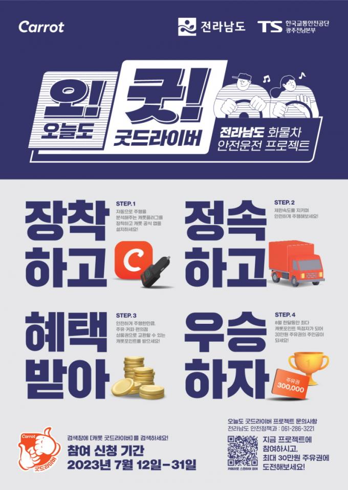 Àü³²Áö¿ª ȹ°Â÷ ¿îÀüÀÚ¶ó¸é ´©±¸³ª ½ÅûÇÒ ¼ö ÀÖ´Ù. ¿À´Â 31ÀϱîÁö º¸¸§¿©°£ ÀÎÅÍ³Ý °Ë»öâ¿¡ ¡®Ä³·Ô ±Âµå¶óÀ̹ö¡¯¸¦ °Ë»öÇØ ½ÅûÇÏ¸é µÈ´Ù. ½ÅûÀÚ´Â ¾ÈÀü¿îÇà ±â·ÏÀåÄ¡ÀÎ ¡®Ä³·Ô Ç÷¯±×¡¯¸¦ ¿ìÆíÀ¸·Î ¹Þ¾Æ Â÷·®¿¡ ÀåÂøÇϰí 8¿ù ÇÑ ´Þ ȹ°Â÷¸¦ ¿îÇàÇÏ¸é ±â±â¸¦ ÅëÇØ Á¦ÇѼӵµ Áؼö, ±ÞÃâ¹ß¡¤±ÞÁ¤°Å, ±Þ°¡°¨¼Ó µî ´Ù¾çÇÑ ÁöÇ¥¿¡ µû¶ó ¾ÈÀü¿îÀü ½ÃÇà Á¤µµ°¡ ÃøÁ¤µÈ´Ù.