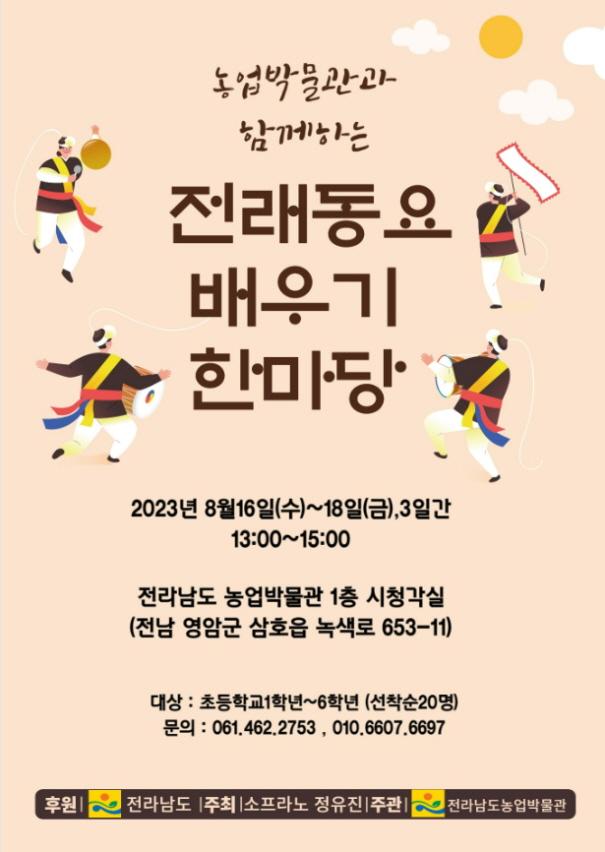 ¾î¸°ÀÌ Àü·¡µ¿¿ä±³½ÇÀº ¿ÃÇØ »õ·Î ±âȹÇÑ ÇÁ·Î±×·¥À¸·Î 8¿ù 16ÀϺÎÅÍ 3Àϰ£ ¿î¿µÇϸç, ÀØÈ÷´Â Àü·¡µ¿¿äÀÇ ±âÃÊ ¹ß¼ººÎÅÍ À²µ¿±îÁö ¹è¿ï ¼ö ÀÖ´Ù.