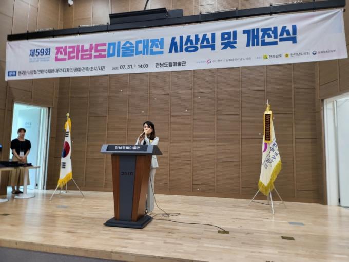 ÇÑ ÀÇ¿øÀº Ãà»ç¿¡¼ ¡°Àü¶ó³²µµ¹Ì¼ú´ëÀüÀº Áö³ 59³â µ¿¾È ÈǸ¢ÇÑ ÀÛ°¡µéÀ» ¹èÃâÇϰí Çѱ¹ ¹Ì¼úÀÇ À§»óÀ» ³ôÀ̴µ¥ Å©°Ô À̹ÙÁöÇØ ¿Ô´Ù¸ç, ¼ö»óÇϽЏðµç ºÐµé¿¡°Ô ÃàÇÏÀÇ ¹Ú¼ö¸¦ º¸³»°í, Àü³²µµ¹ÎÀÇ ¹®ÈÀû °¨¼ö¼ºÀ» ´õ¿í dz¿ä·Ó°Ô ÇÒ ¼ö ÀÖµµ·Ï µµÀÇȸ¿¡¼µµ ¹®È¿¹¼ú ºÐ¾ßÀÇ ¹ßÀü°ú Ȱ¼ºÈ¸¦ À§ÇØ ³ë·ÂÇϰڴ١±°í ¸»Çß´Ù.