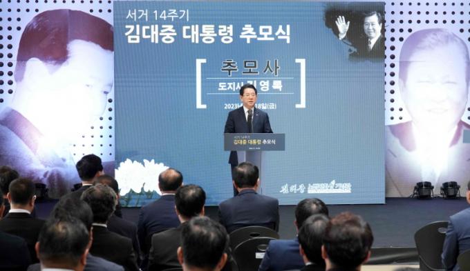 Ã߸ð½Ä¿¡´Â ±è¿µ·Ï Àü³²µµÁö»ç¿Í ±è´ëÁß Àü³²µµ±³À°°¨, Àü°æ¼± Àü³²µµÀÇȸ ºÎÀÇÀå, °¢±Þ ±â°ü¡¤»çȸ´ÜüÀå°ú ±è´ëÁß ´ëÅë·ÉÀ» ±×¸®¿öÇÏ´Â µµ¹Î µî 100¿© ¸íÀÌ ÂüÇß´Ù. Çà»ç´Â ÇåÈ, Ã߸ð»ç, ±Ø´Ü °¹µ¹ÀÇ Ã߸ð±Ø, 2023³â ´ëÇѹα¹ ±¹¹ÎÀÌ ´ëÅë·É²² µå¸®´Â ¿µ»ó ÆíÁö ¼øÀ¸·Î ÁøÇàµÆ´Ù.