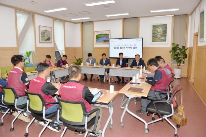 À̹ø °£´ãȸ´Â Àü±¹Ç÷£Æ®°Ç¼³³ëÁ¶ Àü³²µ¿ºÎ․°æ³²¼ºÎÁöºÎ ³ëµ¿ÀÚµéÀÇ ÀÓ±ÝÇù¾à ±³¼· µî °íÃæ¿¡ ´ëÇÑ ÀǰßÀ» ¼ö·ÅÇϰíÀÚ ¸¶·ÃµÇ¾úÀ¸¸ç, ¼¿µ¹è ÀÇÀå․¹é¼ºÈ£ ºÎÀÇÀå․¾È¿µÇå ÀÇȸ¿î¿µÀ§¿øÀå․ÃÖ´ë¿ø »ê¾÷°Ç¼³À§¿øÀå µî ÀÇ¿ø 4¸í°ú Àü±¹Ç÷£Æ®°Ç¼³³ëÁ¶ Àü³²µ¿ºÎ․°æ³²¼ºÎÁöºÎ °ü°èÀÚ 10¸íÀÌ Âü¼®Çß´Ù.