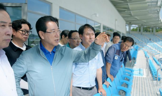 ¸ñÆ÷Á¾ÇÕ°æ±âÀåÀº Àü±¹Ã¼Àü °³․Æóȸ½Ä, Á¦43ȸ Àü±¹Àå¾ÖÀÎüÀüÀÇ °³È¸½Ä°ú ¾ç üÀüÀÇ À°»ó°æ±â°¡ ÁøÇàµÉ ÁÖ °æ±âÀåÀÌ´Ù. ÃÑ 1õ148¾ï ¿ø(±¹ºñ200¾ï ¿ø¡¤µµºñ 330¾ï ¿ø¡¤¸ñÆ÷½Ãºñ 618¾ï ¿ø)À» µé¿© ¸ñÆ÷ ´ë¾çµ¿¿¡ Áö»ó 3Ãþ, ¿¬¸éÀû 2¸¸ 6õ468§³(8õ Æò), °ü¶÷¼® 1¸¸ 6õ468¼® ±Ô¸ð·Î °Ç¼³µÆ´Ù.
